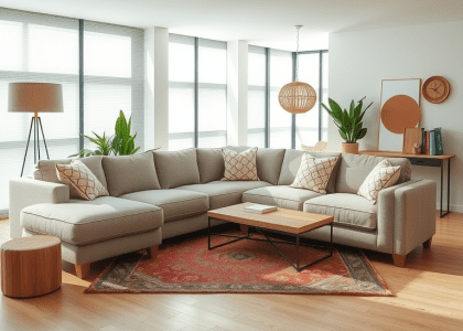This cozy living room showcases a stunning beige sofa that invites relaxation while perfectly complementing your home’s decor. With its ample space filled with stylish furniture and delightful Christmas accents, this living room design inspiration is ideal for creating an inviting atmosphere. Spark your creativity with these decor ideas that will make your apartment feel warm and welcoming. 🌟🛋️